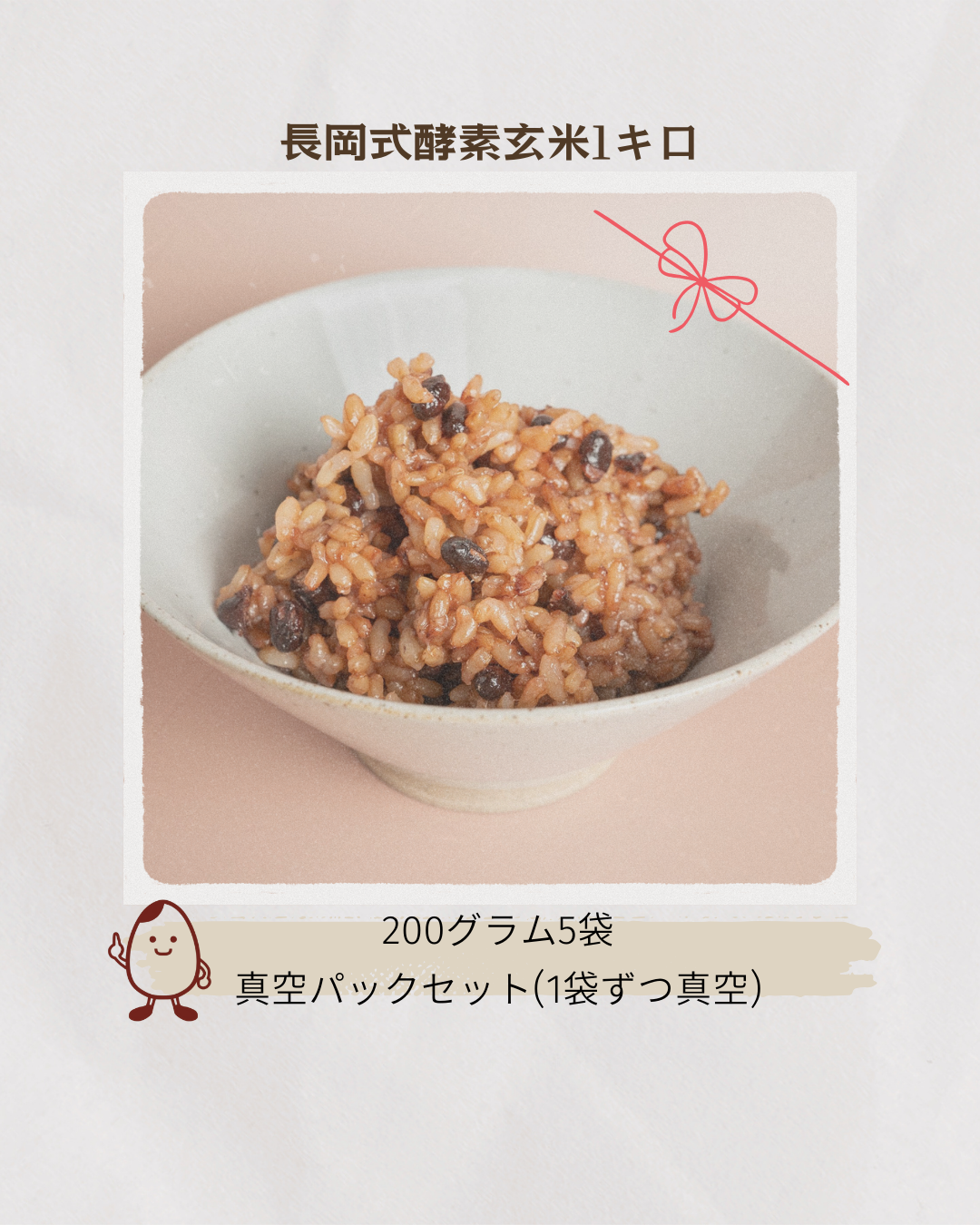 長岡式酵素玄米を真空パックにして、おいしさそのままでご家庭でも簡単に湯せんで食べられます。1キロの酵素玄米をまとめて購入できます。